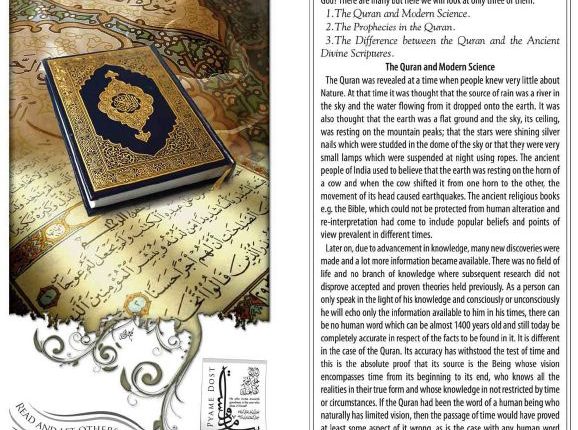 The Glorious Quran is the pure word of God. There is not a single word therein that is not divine. Divine verses therefore, have not been mingled with the history of the Arabs or the events that occurred during the period its revelation.